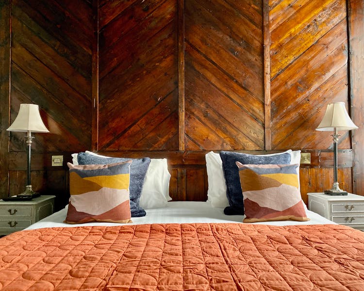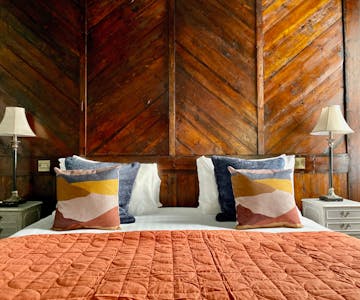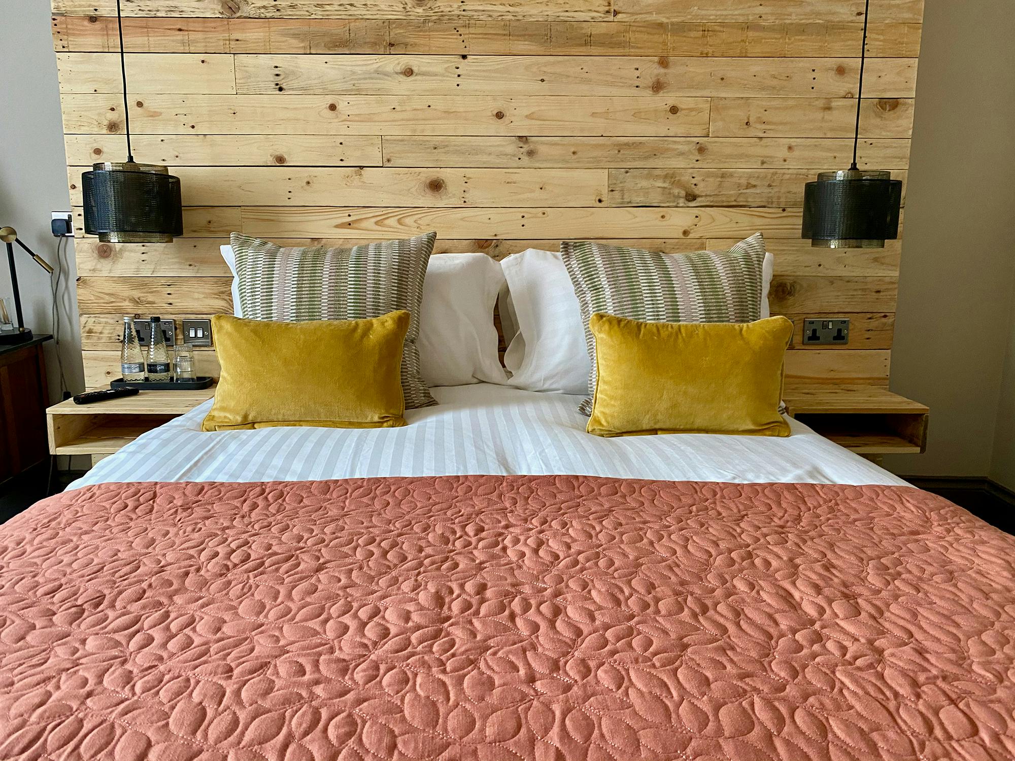 Beautiful large luxury rooms with bespoke wooden feature wall & king bed. The room has a large smart flat screen TV, Nespresso pod machine and other tea/coffee making facilities. The small laptop friendly desk area with charge points - provides an area where you can sit and catch up on some emails. The stunning room also boasts a beautiful luxurious bathroom with modern walk in shower with rainfall shower head and hand held shower. Our delicious cooked breakfast is served from 8am - 11am.